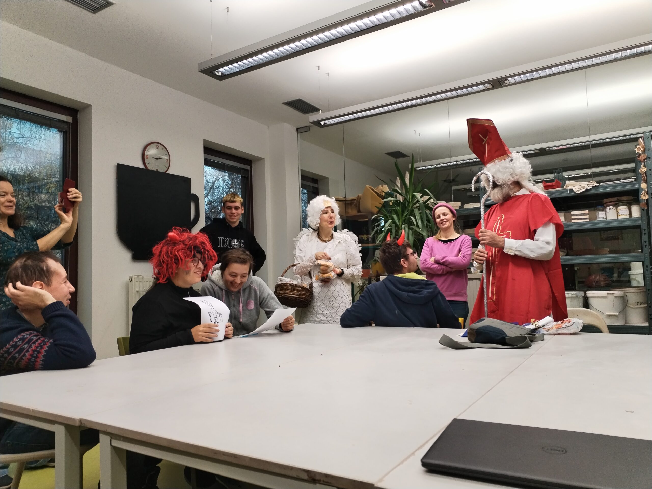 Dnes naši školu rozzářila návštěva Mikuláše, anděla a dvou čertic.. Návštěva prošla všechny tři obory a bedlivě zkoumala, zda mezi studenty nenajde někoho opravdu nezbedného. Nakonec však museli uznat, že naši studenti mají vzorné chování – čerti tak odešli s prázdnými pytli.