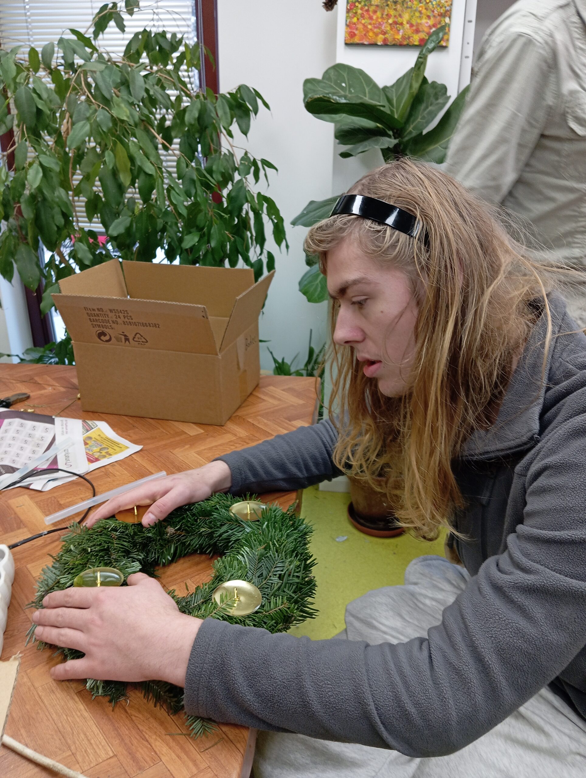 Zahradníci v hodinách OdV dohotovují své výrobky na adventní výstavu. Ve třídách to krásně voní jehličím , které ale máme úplně všude. K práci si pouštíme vánoční koledy, pálíme františky a i přesto, že práce je hodně, dobrá nálada je u nás na prvním místě. Moc se těšíme na pondělní vernisáž i na celotýdenní prodej a v neposlední řadě na vás všechny, kteří se za námi vypraví.