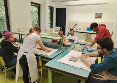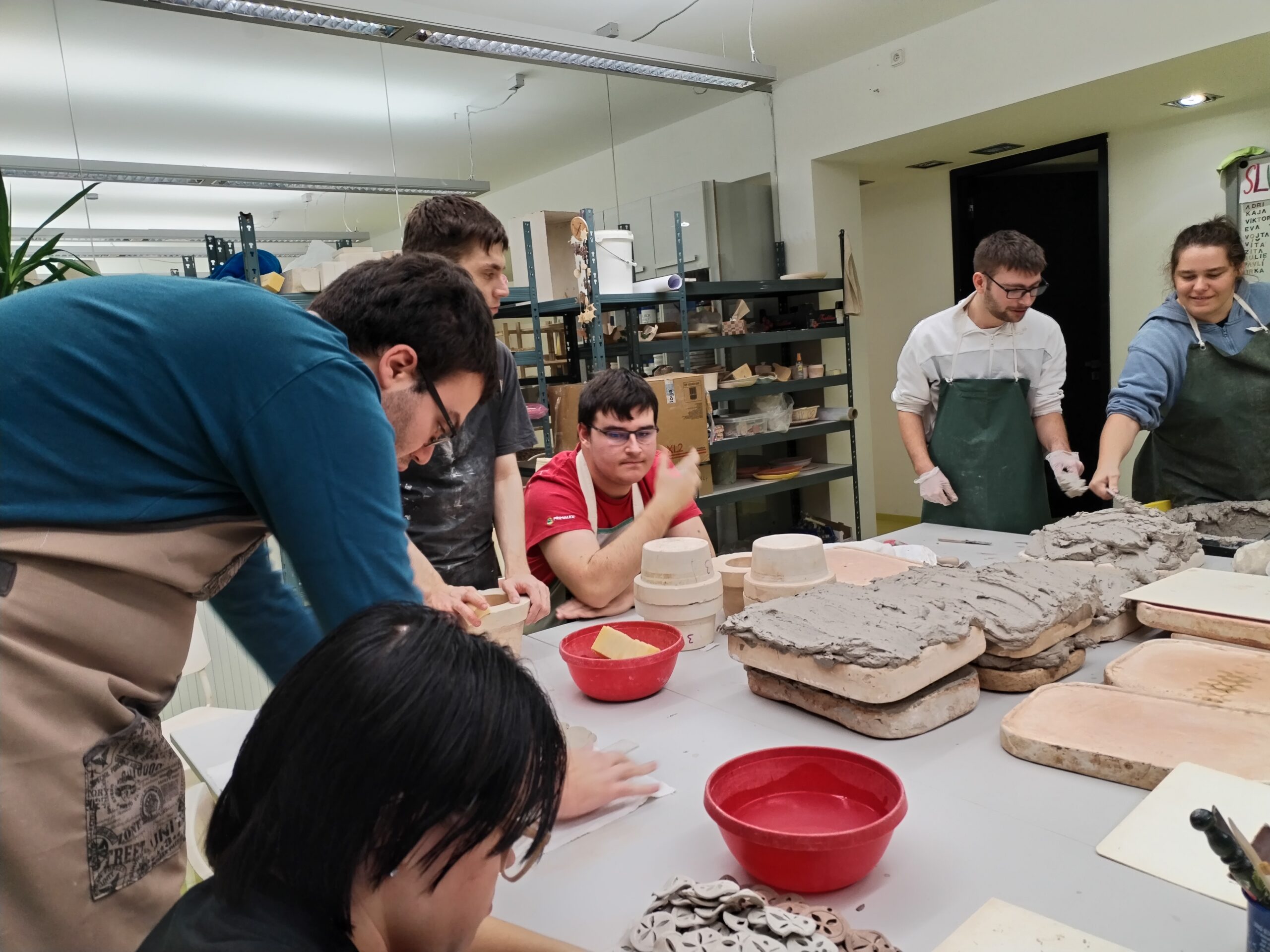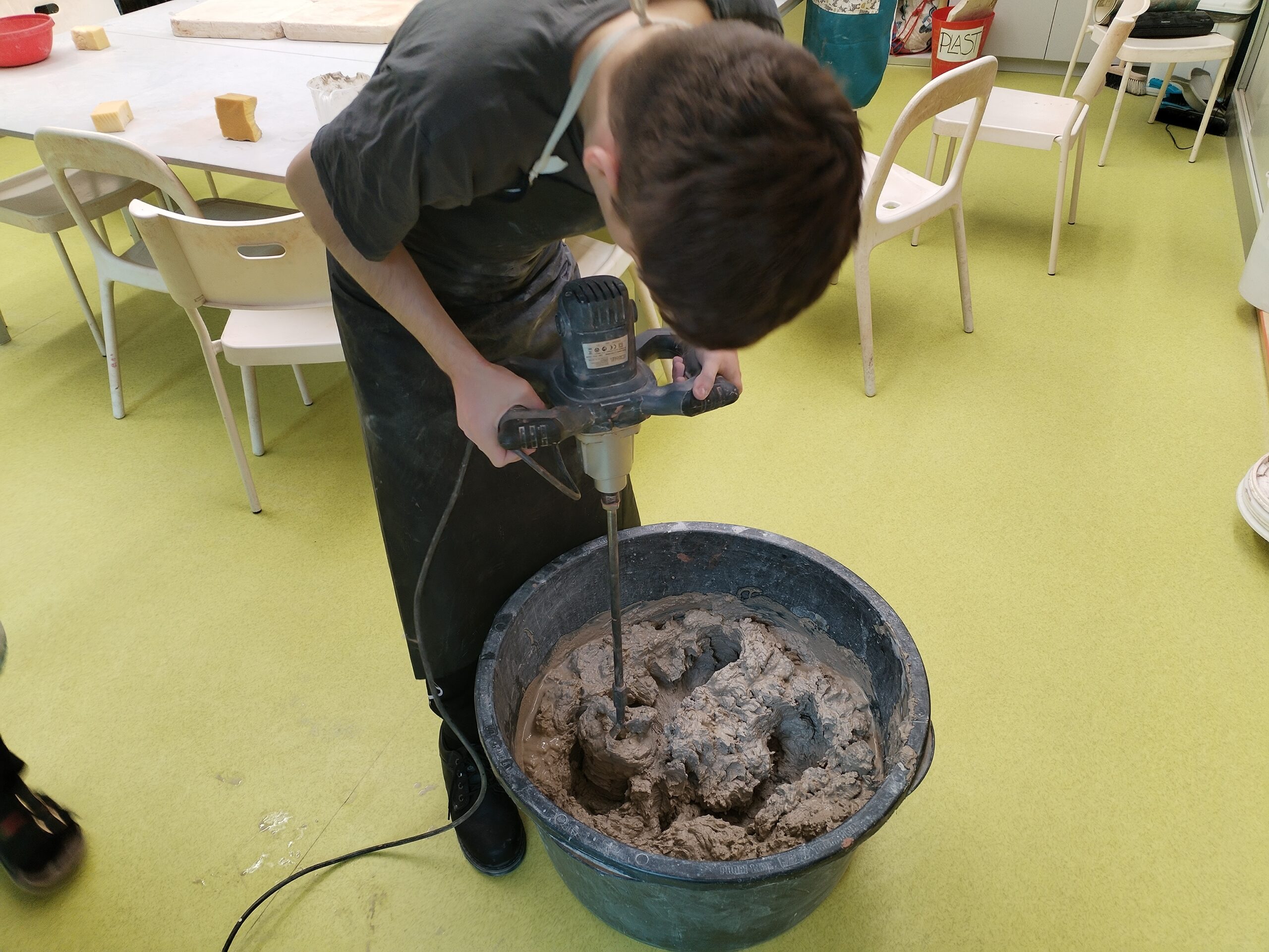 Nezapomněli jsme ani na recyklaci keramické hmoty s ostřivem a potěšila nás i dodávka nové světlé hmoty, díky které šla práce studentům opravdu od ruky. 🙂