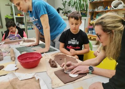 Ve středu u nás proběhla druhá část keramického workshopu s třídou 1.B. Opět jsme se ocitli v roli vyučujících a tentokrát jsme žáky učili, jak správně glazovat výrobky z minulého setkání.