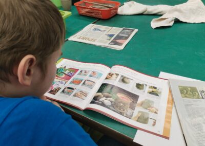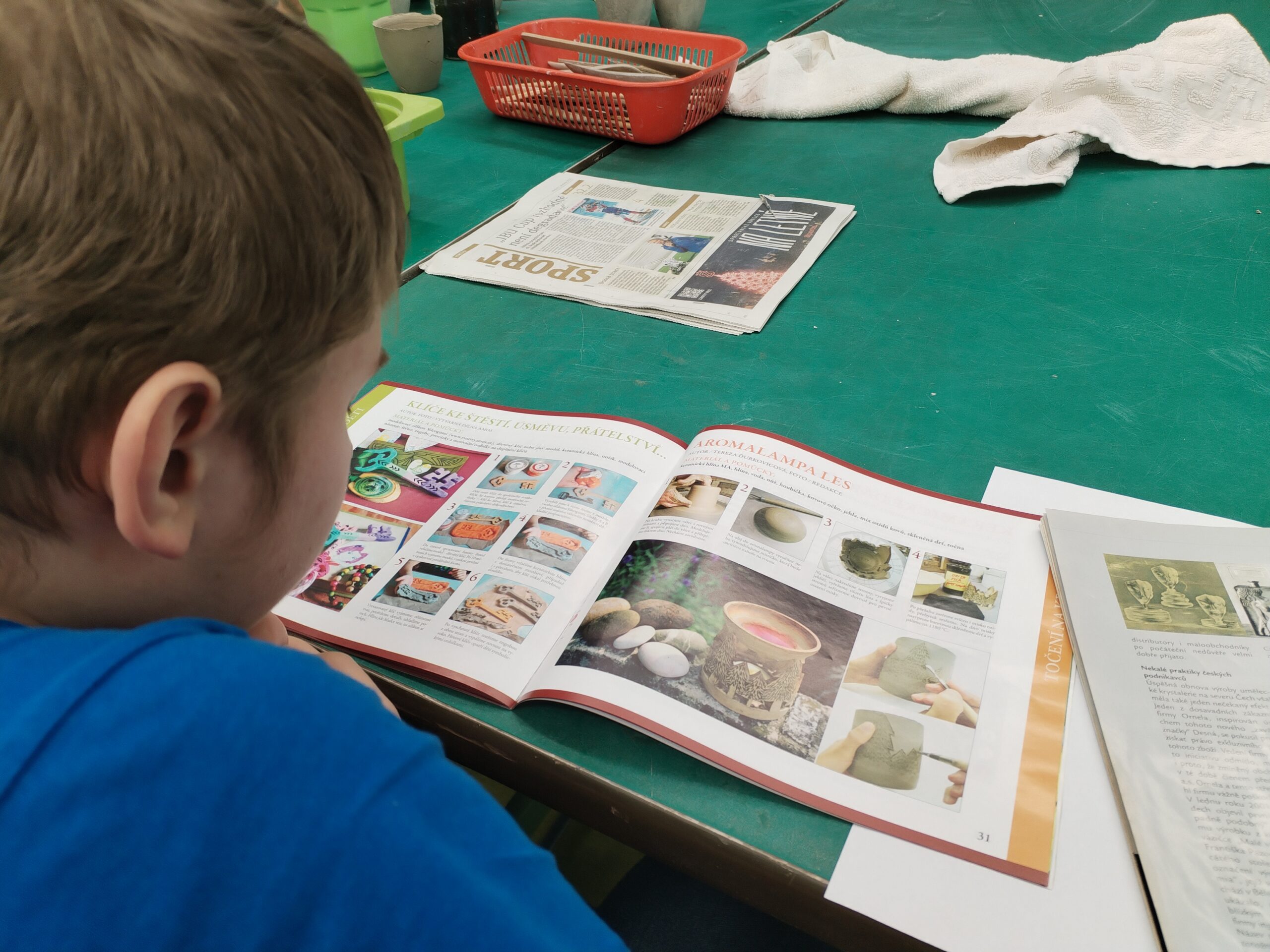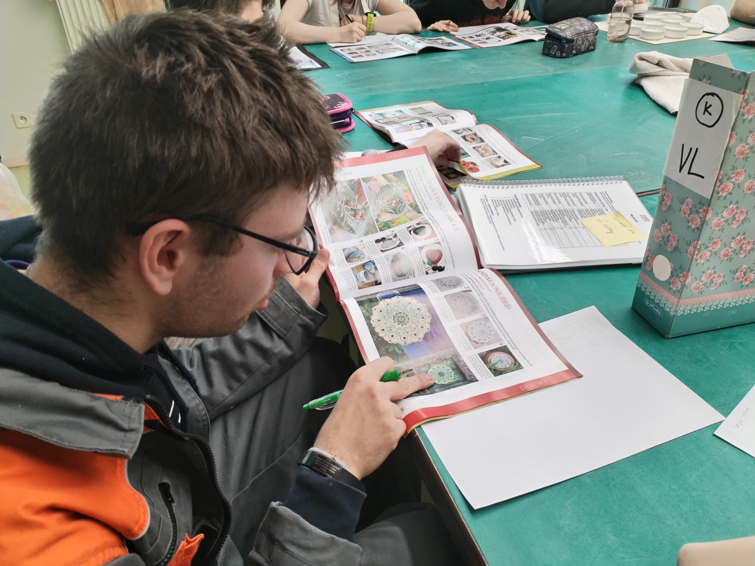 Zároveň jsme se intenzivně připravovali na ples – nacvičovali jsme nástup, tiskli štítky do tomboly a pomáhali s její organizací. Nezapomněli jsme ani na inspiraci, a tak jsme si prohlédli časopis Golem, který je plný nápadů na keramické výrobky.