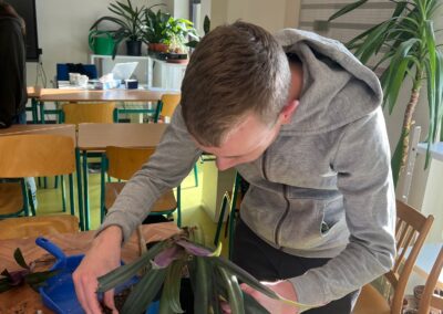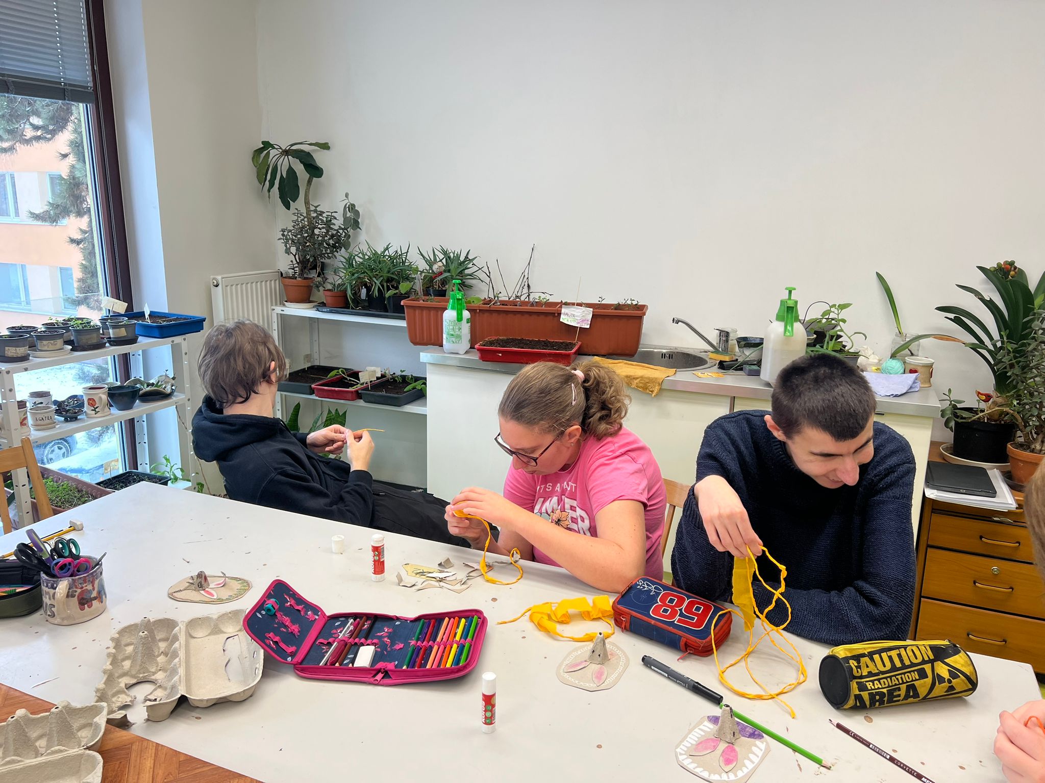 Tento týden byl plný rozličných prací a aktivit. V úterý jsme prováděli udržovací a zmlazovací řez jádrovin. Zrovna na nás vyšlo plno sněhu, ale nevadí, zvládli jsme vše krásně. Snad stromy na jaře hojně obrazí a v létě a na podzim i zaplodí. Ve zbývajících dnech jsme se už připravovali na Velikonoce, vyráběli levandulové pytlíky, zajíčky, vajíčka a různé jiné ozdoby. A nesmíme zapomenout na přesazování pokojovek, pro třeťáky už ostrá příprava na závěrečné zkoušky.