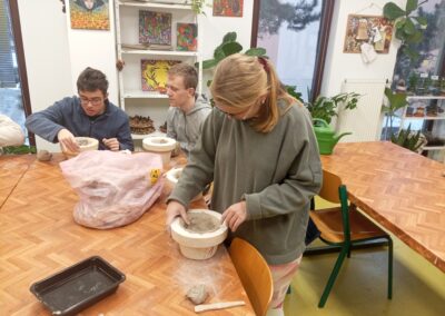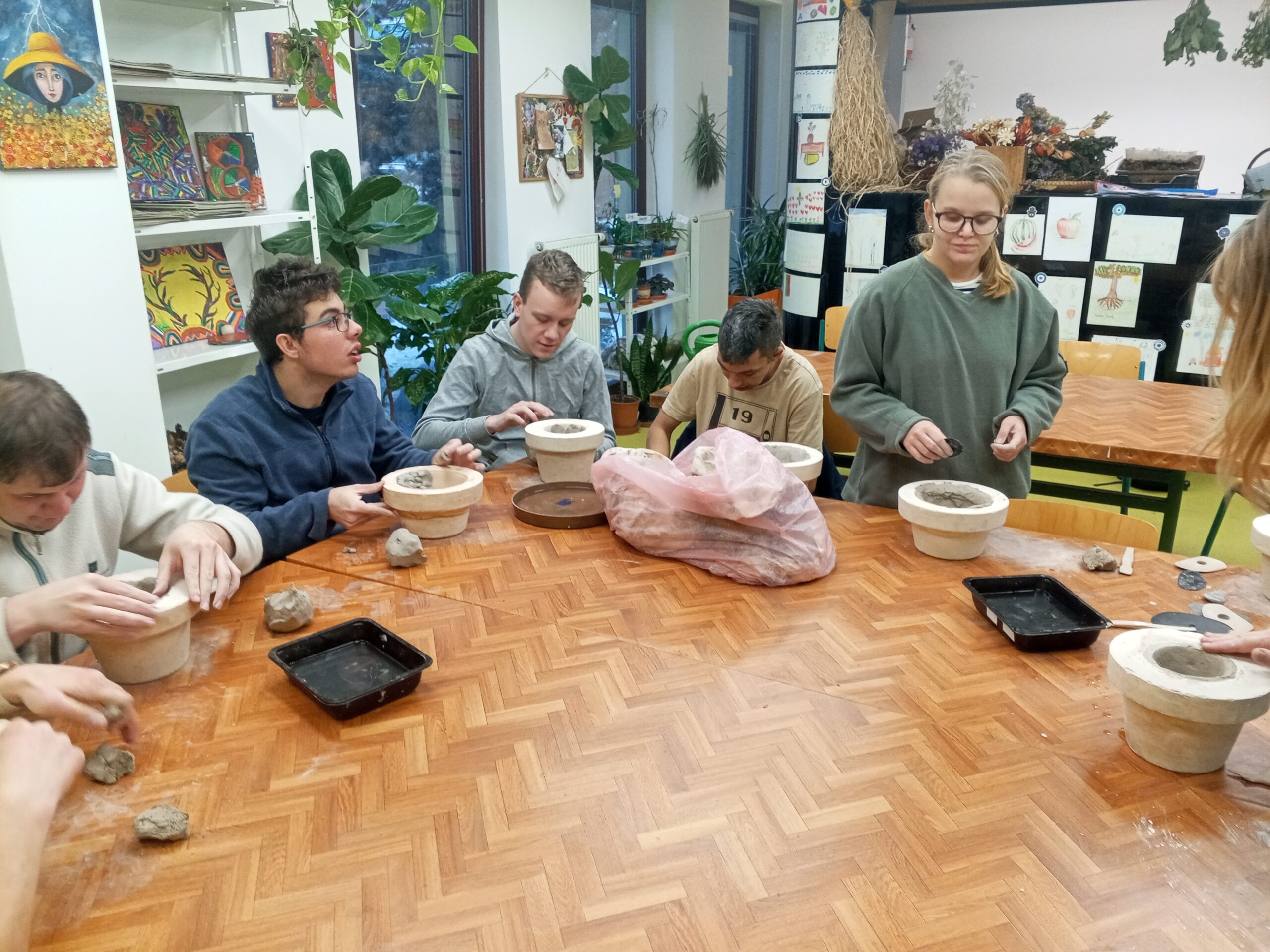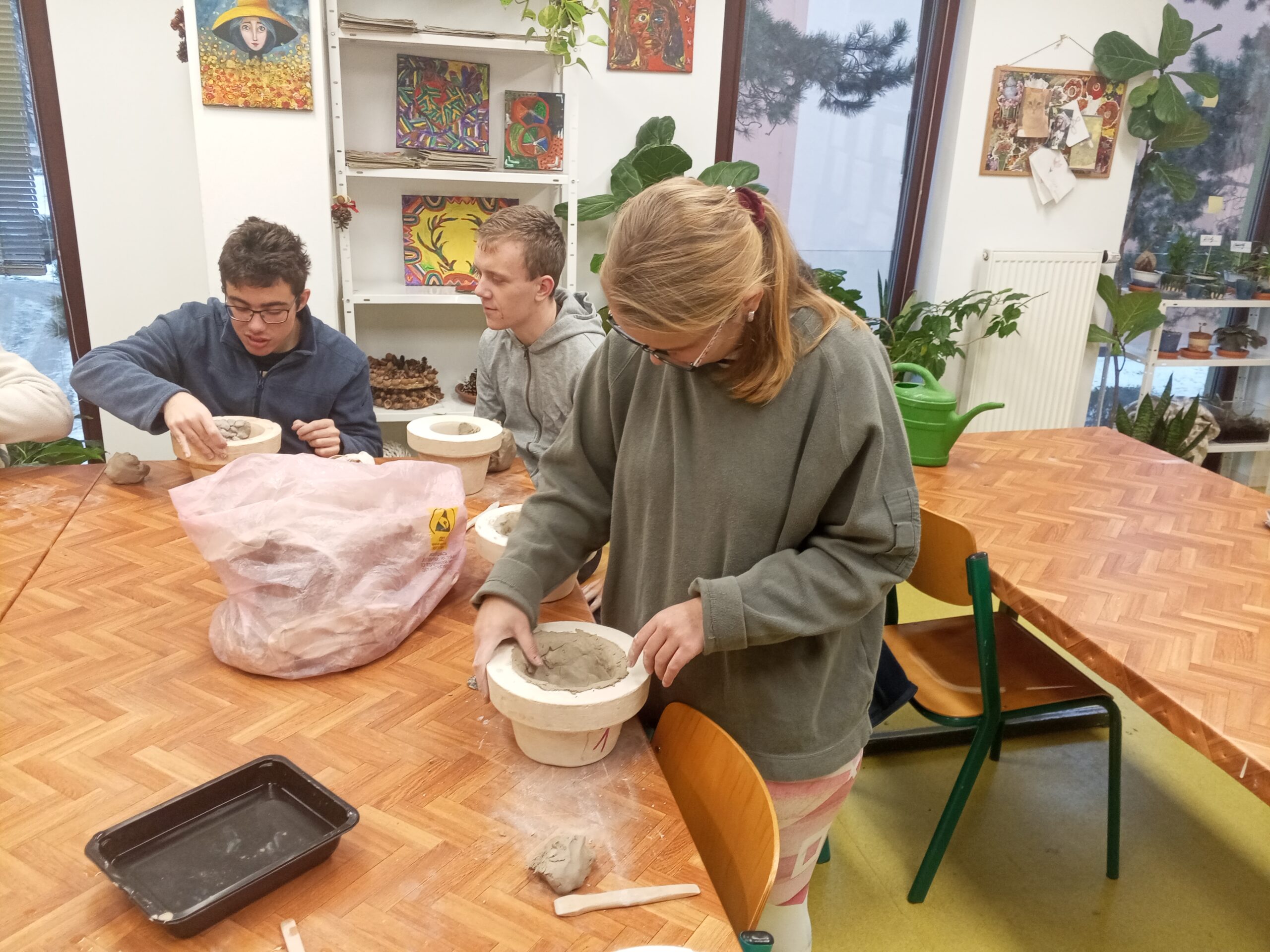 Zahradníci si tento týden vyzkoušeli i práci s keramickou hlínou. Dělali si květináče, které po vyschnutí budou vypálené přežahem a následně použity na přesazování rozmnožených rostlin. Žákům se práce líbila a i když někteří pracovali s hlínou poprvé, všichni výzvu zvládli na výbornou.