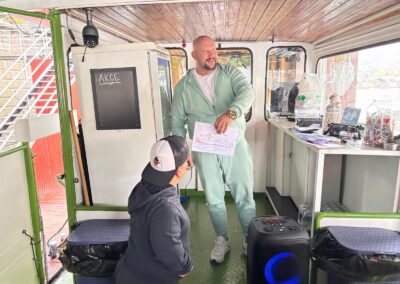 Ráno jsme se sešli ve škole a den zahájili krátkou instruktáží o bezpečnosti při exkurzi, tentokrát více do hloubky, protože nás čekala plavba po řece. Poté se žáci pustili do tvorby obrázků, které jsme připravili jako dárek pro pana kapitána.