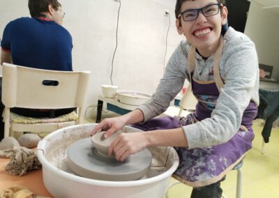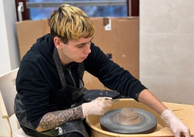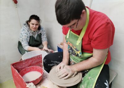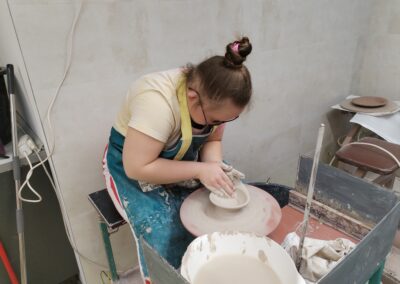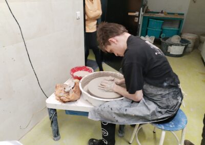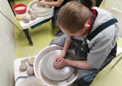Práce na kruhu je rozmanitá – vznikají např. misky, i další tvary – a každý výrobek je zároveň novou zkušeností. Učíme se trpělivosti, soustředění i přesnosti.