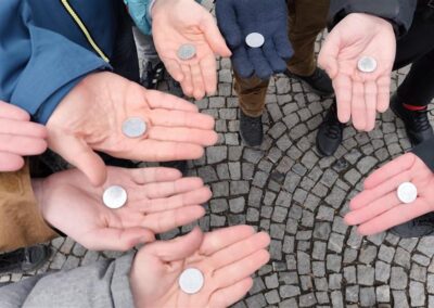 I tento čtvrtek, v den přijímacích zkoušek, jsme vyrazili do pražských ulic. Tentokrát nás čekal Vyšehrad, starobylé sídlo českých knížat. Obdivovali jsme místní architekturu, výhledy do kraje i první rozkvetlé narcisy. Cestou jsme potkali i místního kováře, který nás obdaroval kopiemi starých mincí. Protože nám počasí příliš nepřálo, navštívili jsme CAMP – Centrum architektury a městského plánování. Zde jsme se ohřáli a prohlédli si výstavu týkající se devadesátých let. Výlet jsme pak ukončili v kavárně u šálku teplého nápoje.