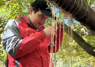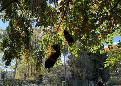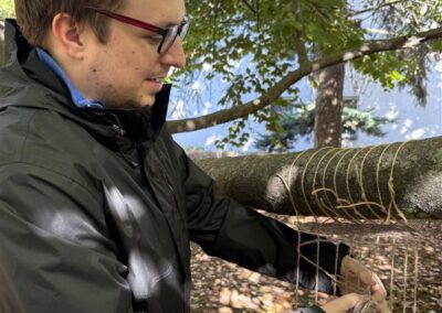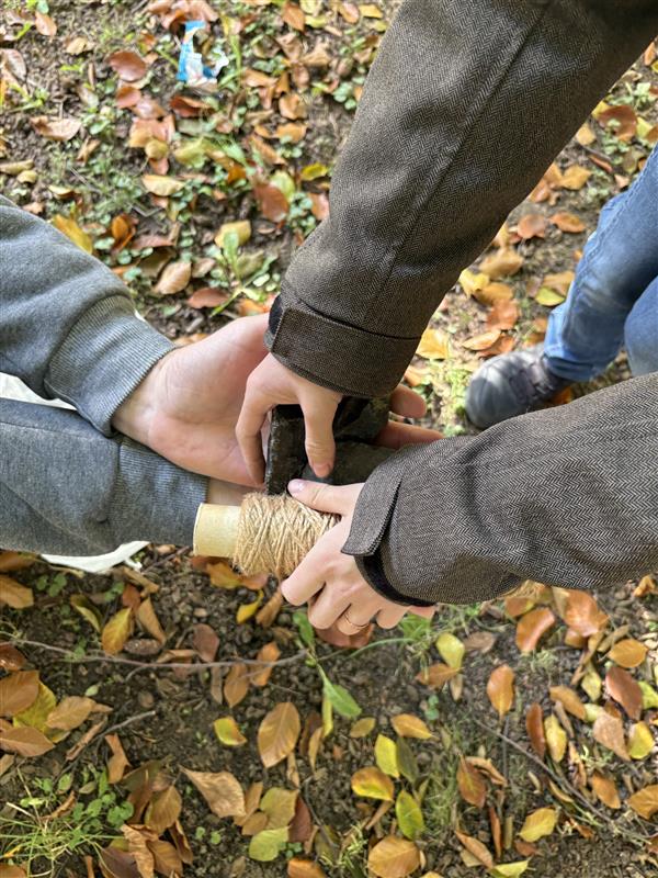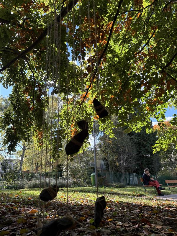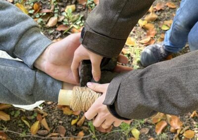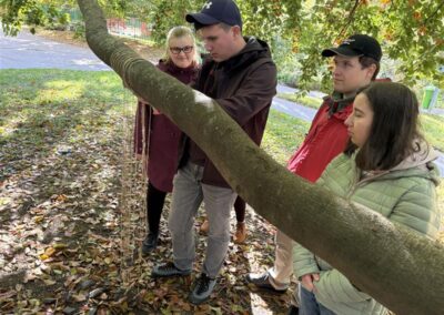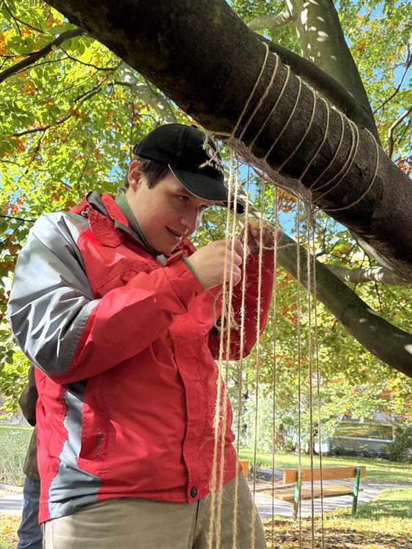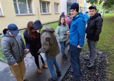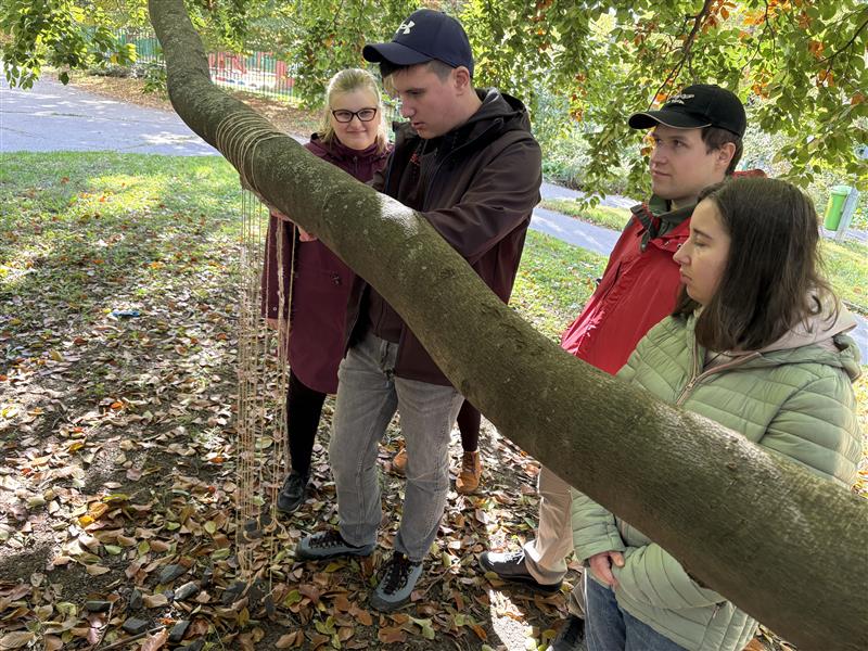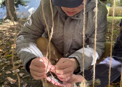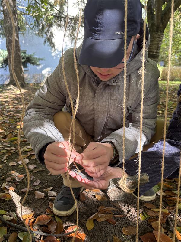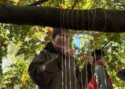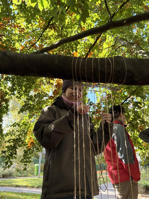 V rámci Odborného výcviku a hodiny Textilních materiálů jsme se vydali ven, kde jsme si vyrobili vlastní primitivní tkací stav. Během tvoření jsme si užili společnou práci na čerstvém vzduchu a vyzkoušeli si, jak se kdysi v době kamenné zpracovávala vlákna a vyráběla tkanina.
