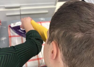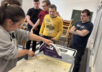 V rámci předmětu Ruční a strojové šití jsme se teoreticky seznámili s tím, jak a proč žehlit. Učivo se nám hezky propojilo i s předmětem Textilní materiály. Žáci si samozřejmě tuto užitečnou dovednost vyzkoušeli i prakticky. Doporučujeme dále trénovat na „domácím hřišti“🙂