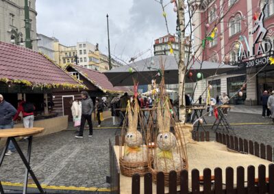 Součástí projektového týdne byla také návštěva velikonočních trhů na náměstí Republiky, kde žáci načerpali inspiraci z tradičních i moderních výrobků a nasáli atmosféru svátků jara.