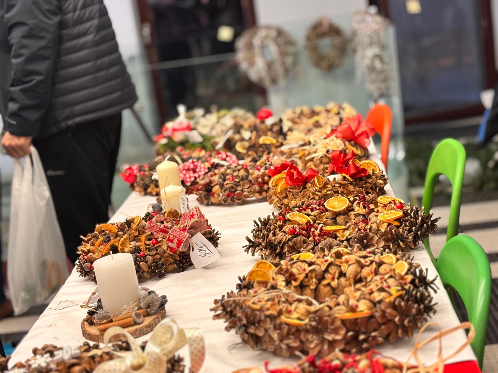 Žáci tkalcovského oboru představili své pečlivě a ručně šité výrobky, na kterých pracovali opravdu dlouho. Keramici vystavili širokou škálu keramických děl – od točených talířů, přes vymačkávané hrnečky až po drobné betlémky. Zahradníci, jako každý rok, připravili velké množství adventních věnců, které krásně a „voňavě“ doplnily vánoční náladu . A samozřejmě další výrobky.