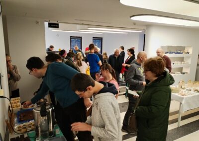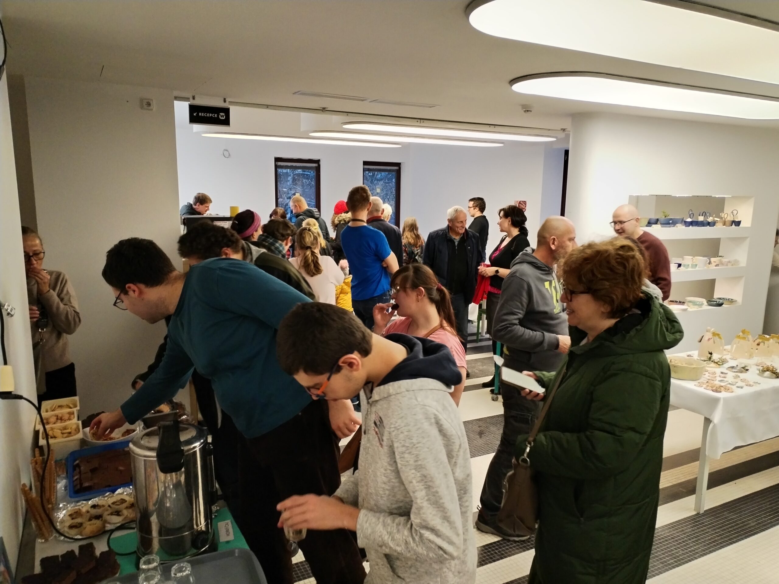 Na vernisáž dorazila řada rodičů i návštěvníků z veřejnosti. Úvodního slova se ujal pan ředitel, který v přátelském duchu představil naši výstavu, poděkoval žákům i pedagogům a poté bylo pro hosty připraveno malé občerstvení.