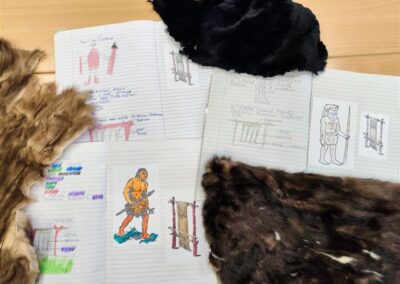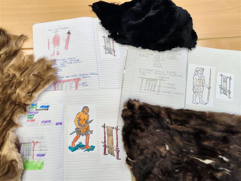 Počátky oblékání spadají až do doby kamenné. V té době se oblečení stává důležitým pro přežití člověka. S žáky jsme shlédli film Osada havranů a popovídali si s nimi o životě v této době. Na internetu jsme našli i různé kvízy na dané téma a zkoušeli si představit, jak těžké to tehdy muselo být..